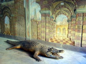 Krásný a bohatě zdobený prostor, typ místnosti italských paláců 17. st., tvoří propojení zámku s parkem. Výzdobu stropu tvoří malé mušle z řeky Ohře, velké jsou ze Středozemního moře. Krokodýl je úlovek hraběte Josefa Herbersteina (1916). Na začátku prohlídky se také dozvíte základní informace historie města a zámku.